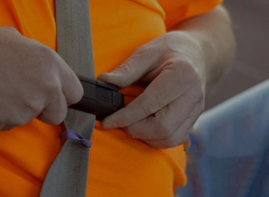 - Slide the tool along the belt to the best spot. We recommend right above where you buckle in. The Sweet Spot!